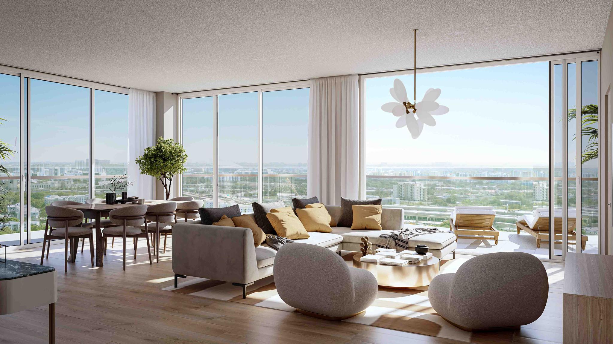 Midtown Park Residences by Proper introduces a new standard of luxury living in Midtown Miami. This 28-story condominium tower features 288 meticulously designed residences, ranging from studios to three-bedroom units, and exclusive penthouses averaging 3,150 square feet with private rooftop terraces, gardens, and pools. Each home boasts soaring 10-foot ceilings, expansive wrap-around terraces with glass railings, floor-to-ceiling energy-efficient windows, imported wood porcelain flooring, Italian kitchens equipped with Sub-Zero and Wolf appliances, and spa-inspired bathrooms adorned with Hansgrohe brass fixtures and signature Jade ceramic walls.
